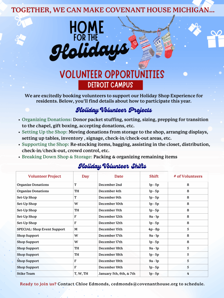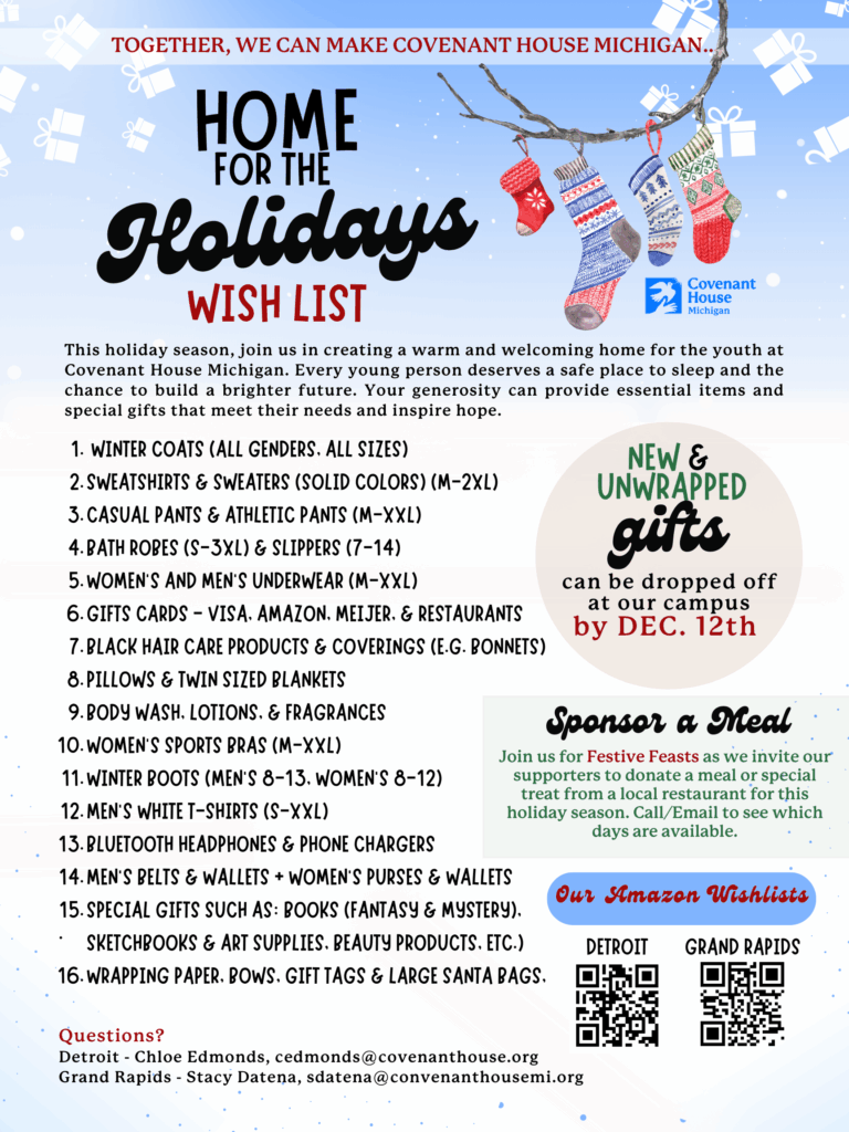Join us in creating a warm and welcoming home for the youth at Covenant House Michigan.